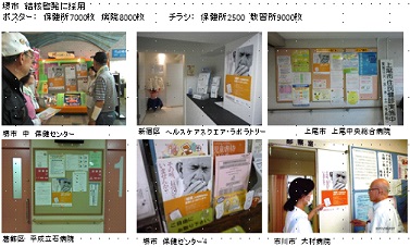 70歳以上の高齢者結核患者は、新規登録者の半数以上を占め、さらに増加傾向にあります。高齢者とその家族、また医療関係者に向けて、病院、保健所、高齢者施設、教習所(高齢者講習)を中心に、ポスターや、チラシなどを活用し啓発活動を行っています。