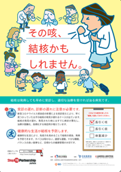 70歳以上の高齢者結核患者は、新規登録者の半数以上を占め、さらに増加傾向にあります。高齢者とその家族、また医療関係者に向けて、病院、保健所、高齢者施設、教習所(高齢者講習)を中心に、ポスターや、チラシなどを活用し啓発活動を行っています。
